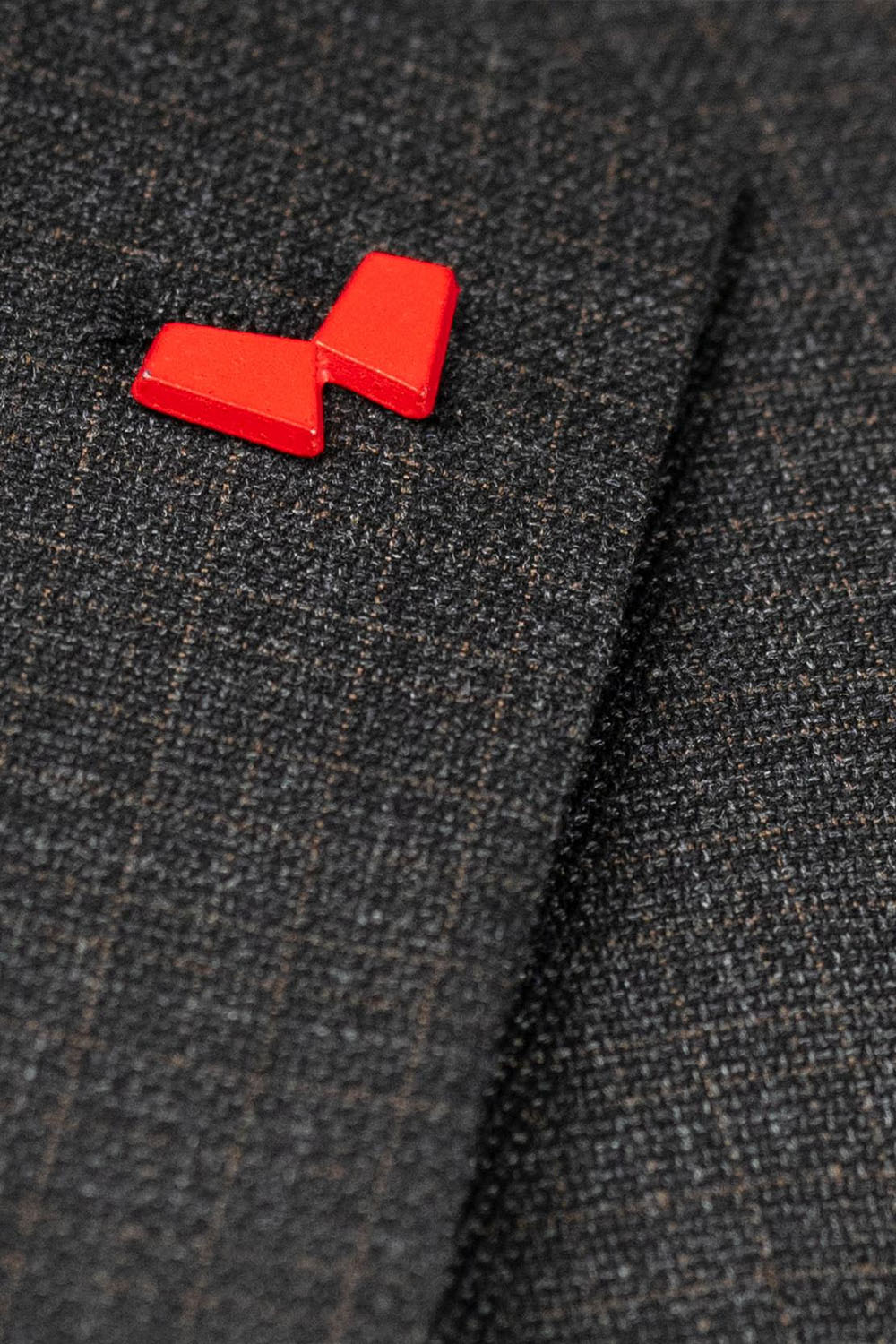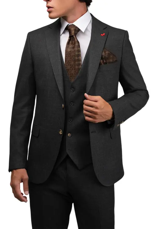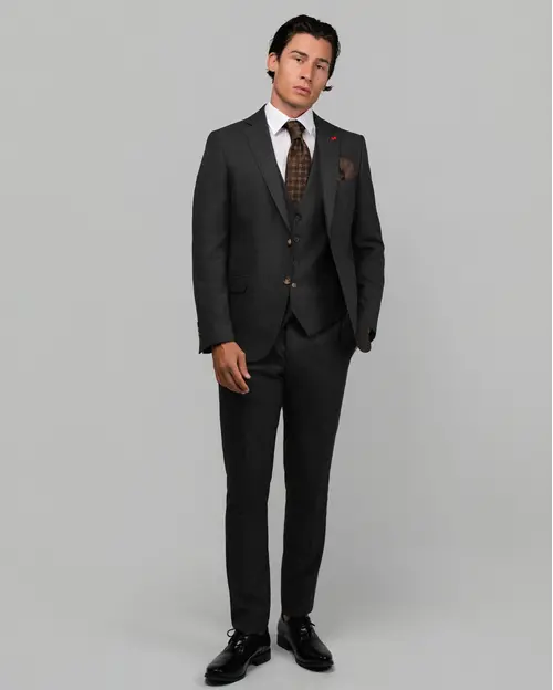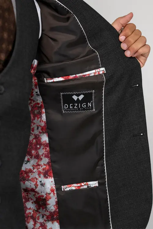 Ανθρακί σχεδιαστικό κοστούμι με καμέλ λεπτομέρειες