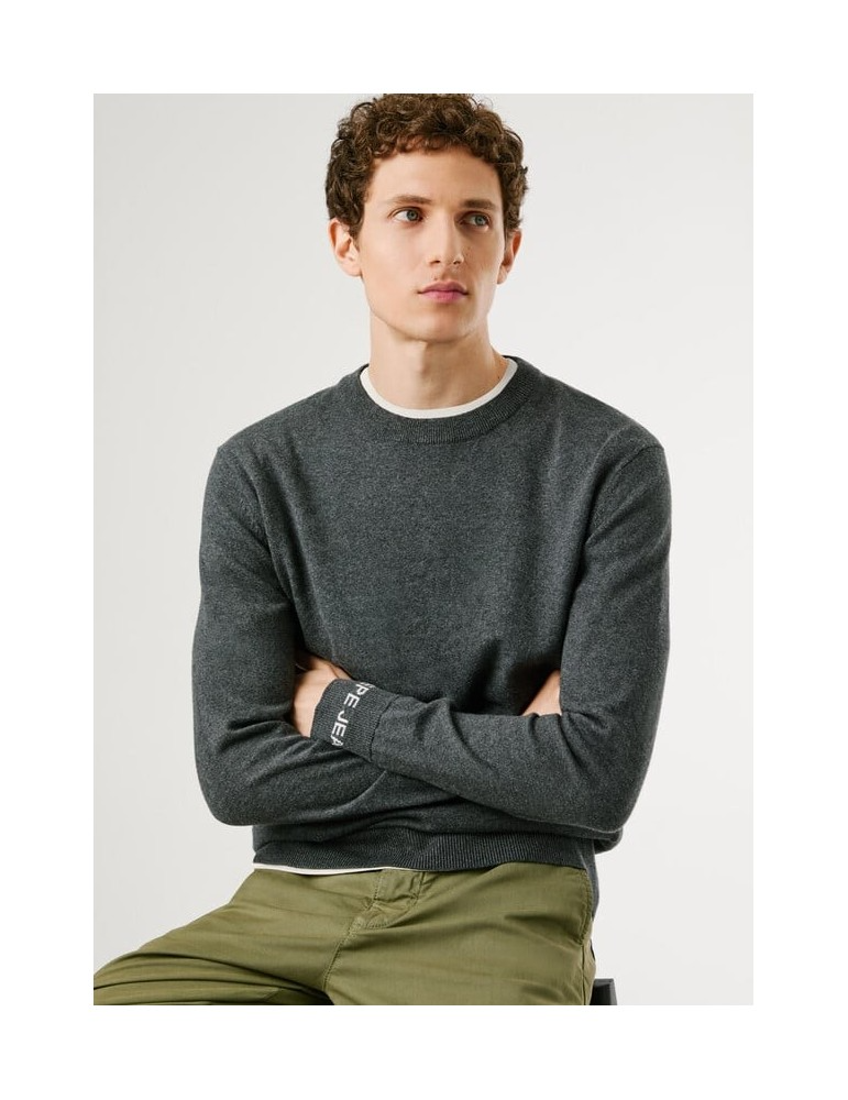 - Πλεκτό μακρυμάνικο με στρογγυλή λαιμόκοψη