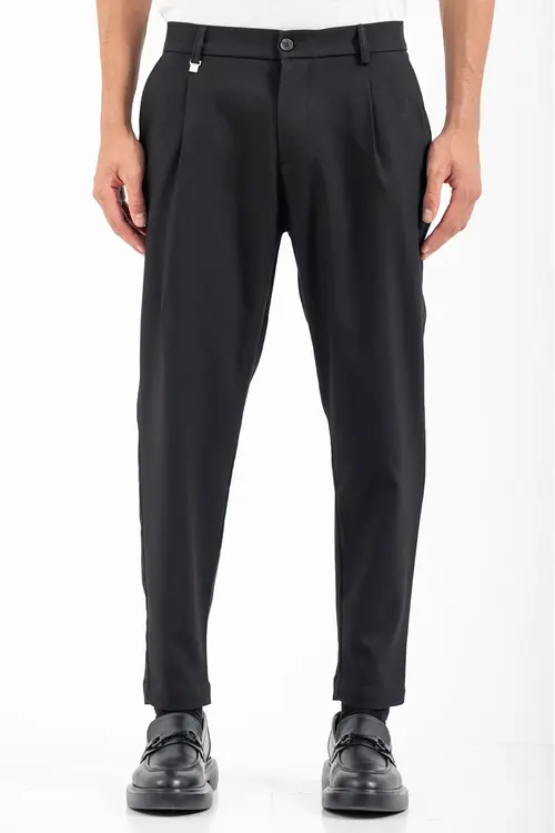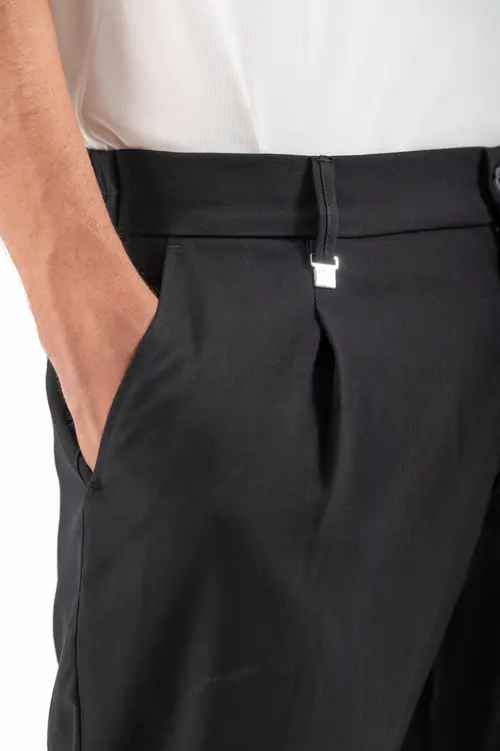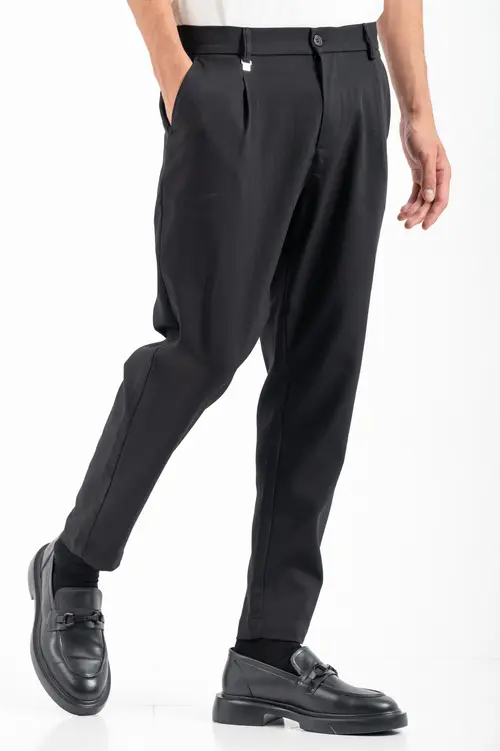 - Παντελόνι μονόπιετο με λάστιχο στη μέση σε loose fit γραμμή