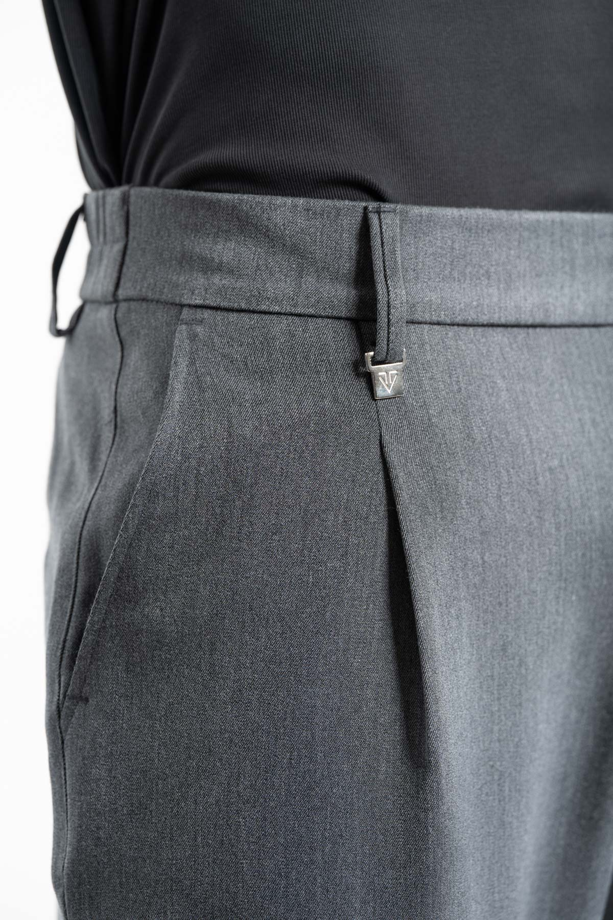 - Παντελόνι μονόπιετο με λάστιχο στη μέση σε loose fit γραμμή
