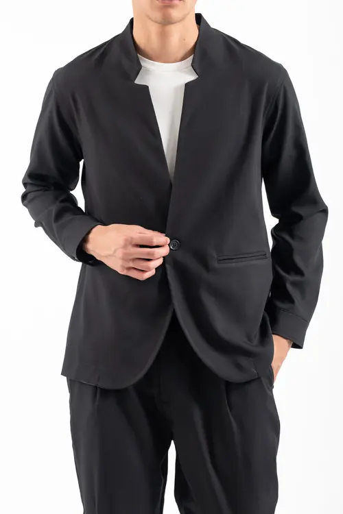 - Overshirt με μάο σχεδιαστικό γιακά και μονόκουμπο κλείσιμο