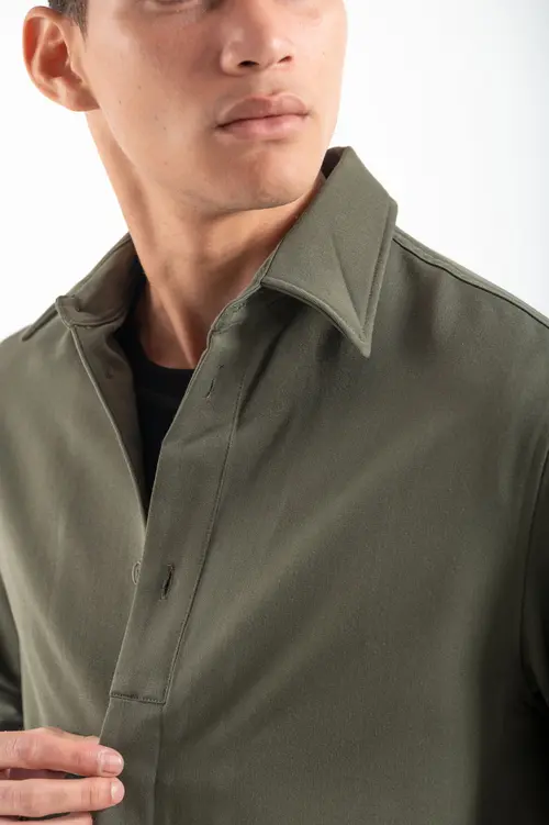 - Overshirt με γιακά και κρυφή πατιλέτα στο κλείσιμο