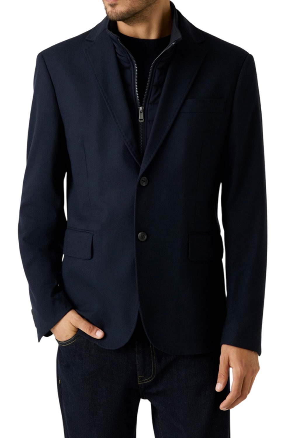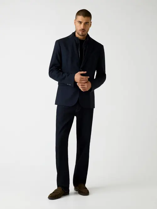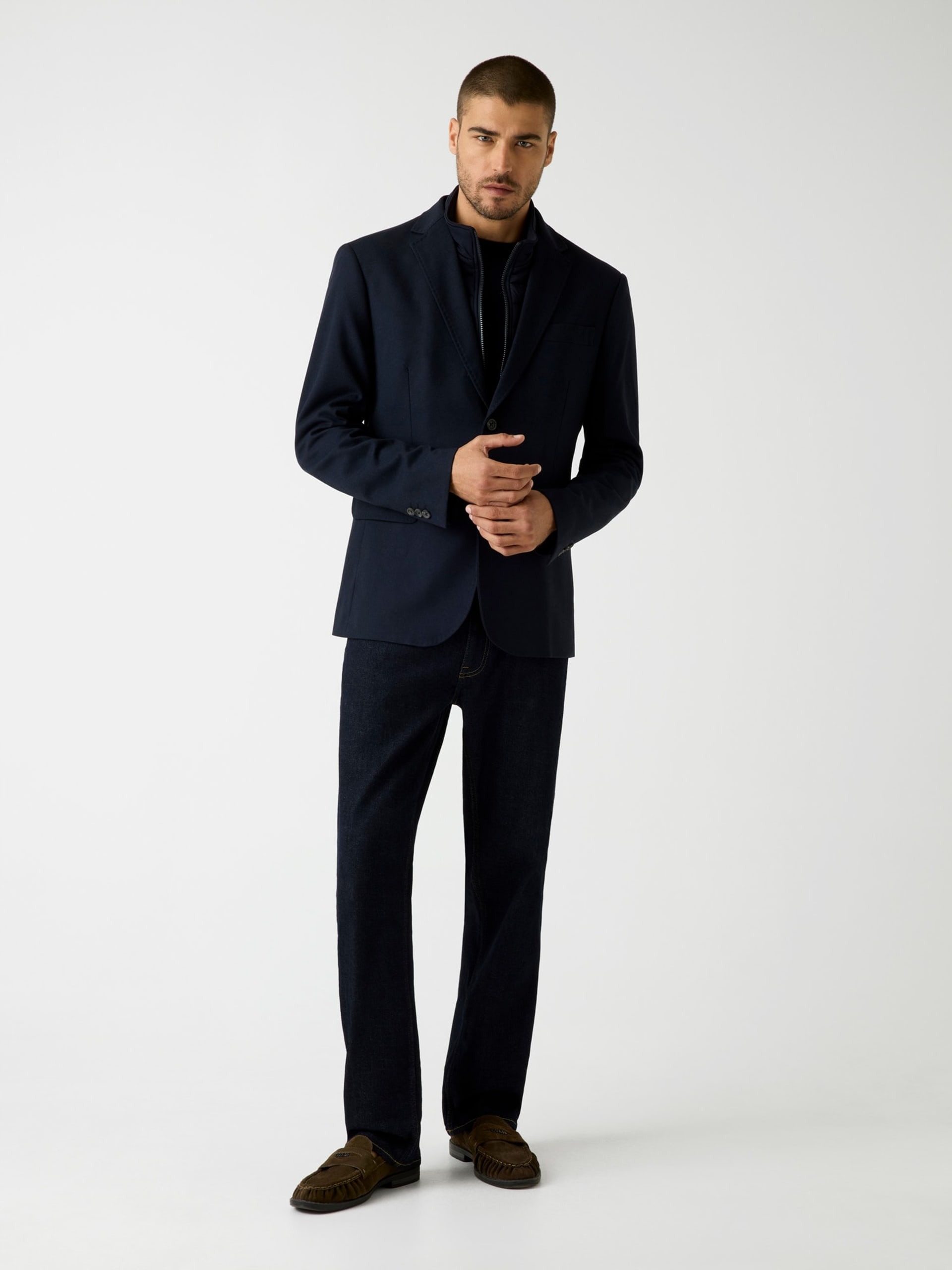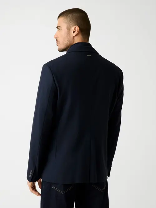 - Σακάκι από ελαστικό, σύμμεικτο ύφασμα από βισκόζη και μαλλί.