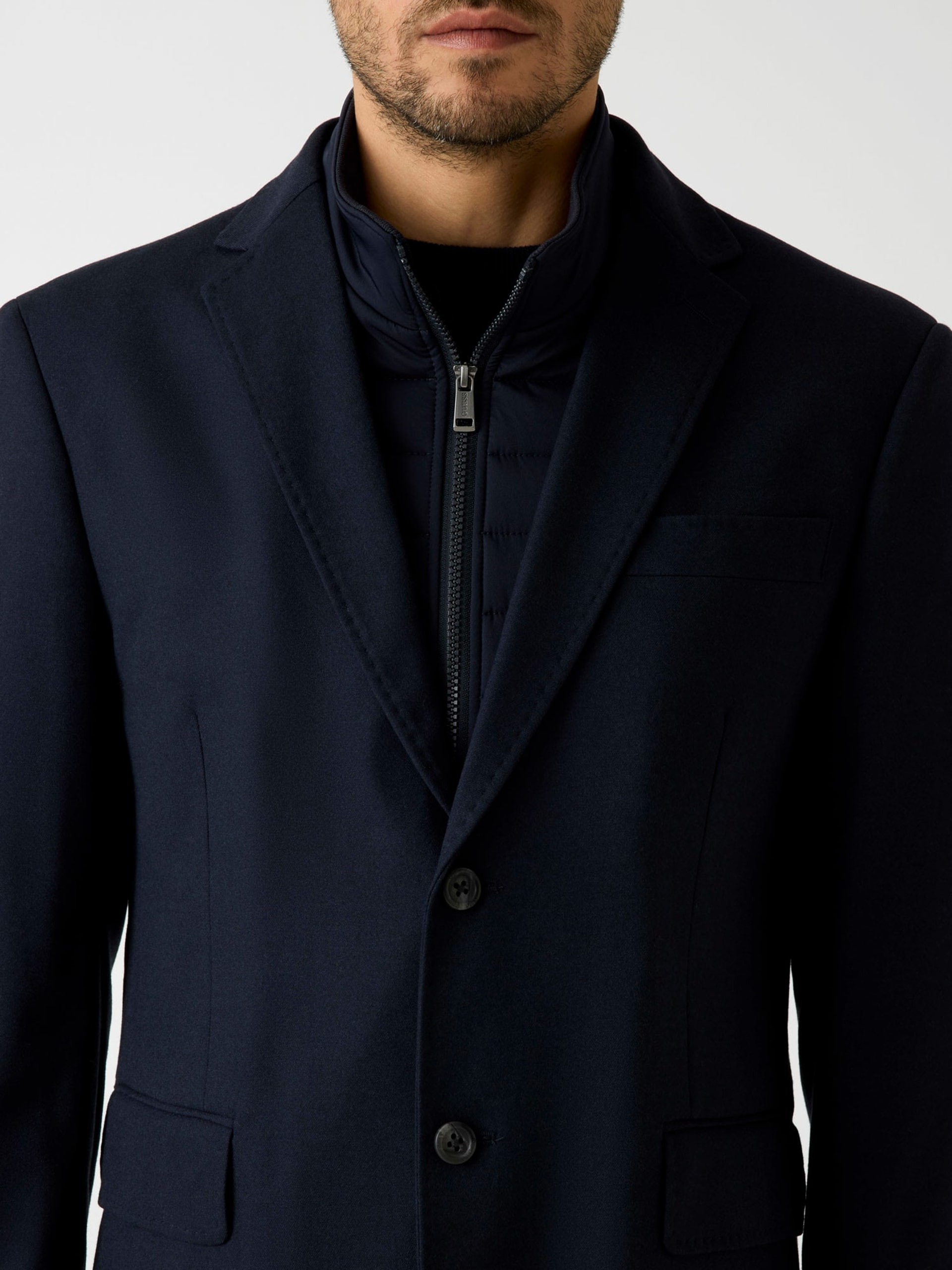 - Κλασικός γιακάς με πέτο με εγκοπή και μακριά μανίκια.