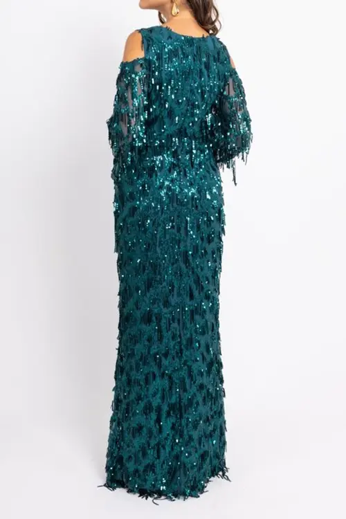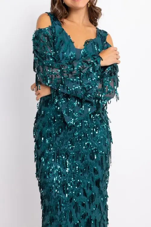 - Maxi φόρεμα παγιέτα σε πετρόλ χρώμα