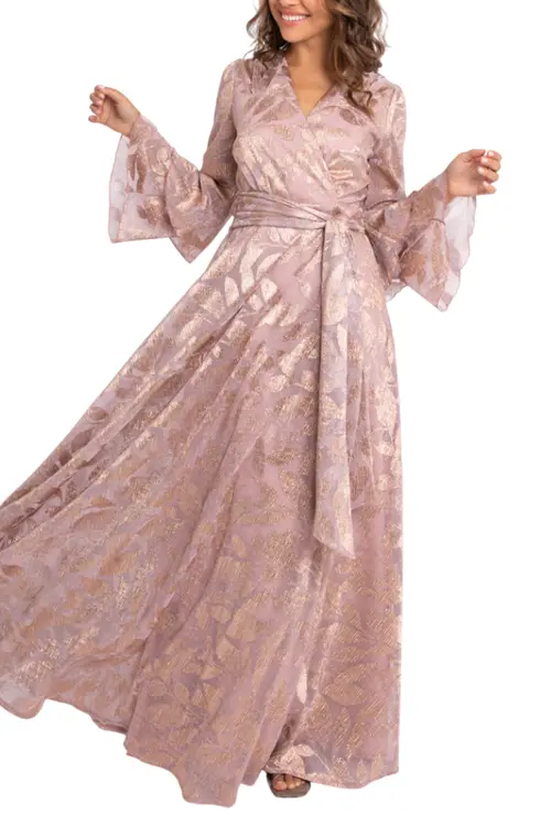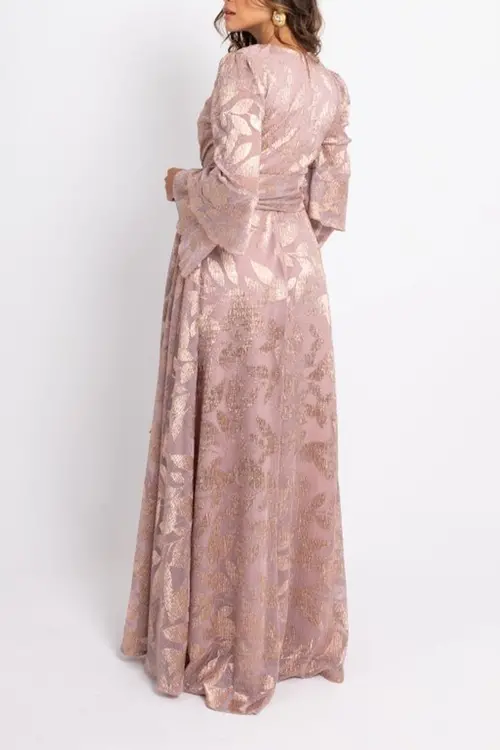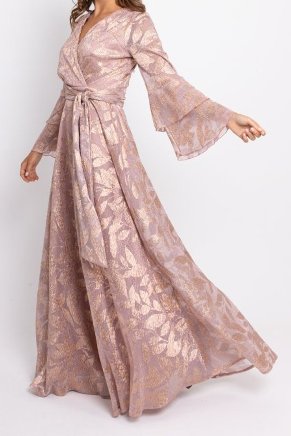 - Βολάν στα μανίκια και ιδιαίτερα χρυσά σχέδια, ροζ