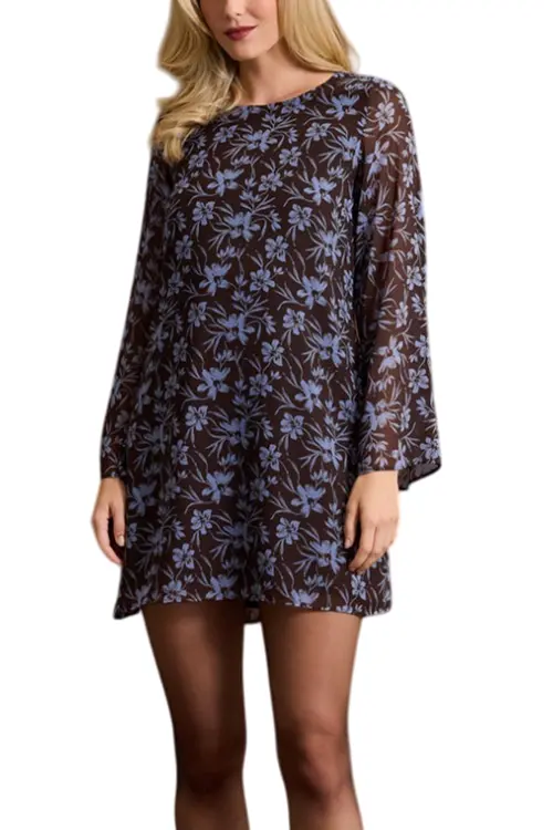 - Φόρεμα μίνι εμπριμέ, μακρυμάνικο.