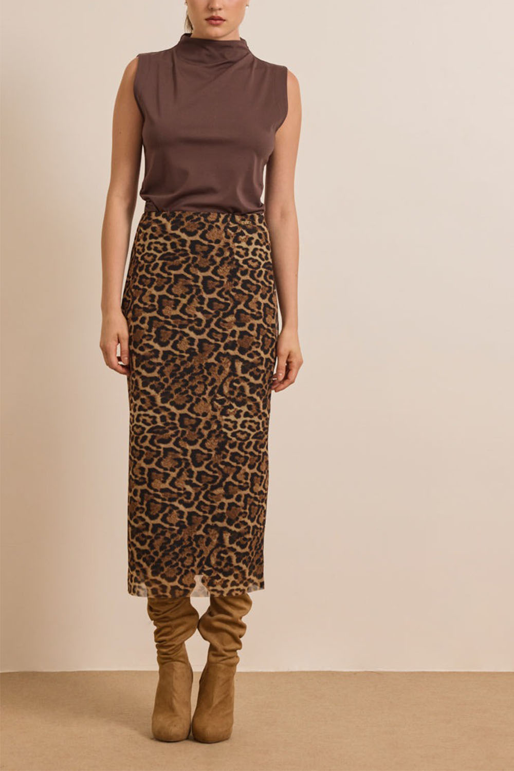 - Μίντι animal printed φούστα σε ίσια γραμμή