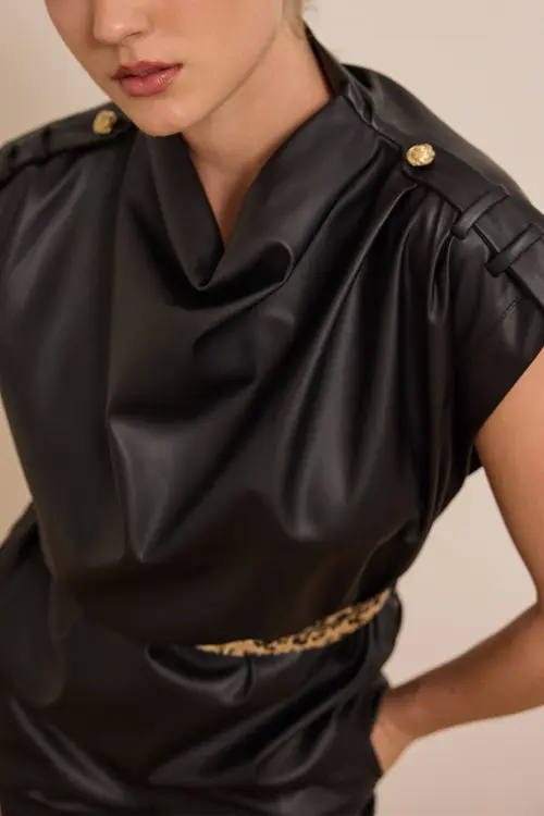 - Σχέδιο με επωμίδες και χρυσιά κουμπιά