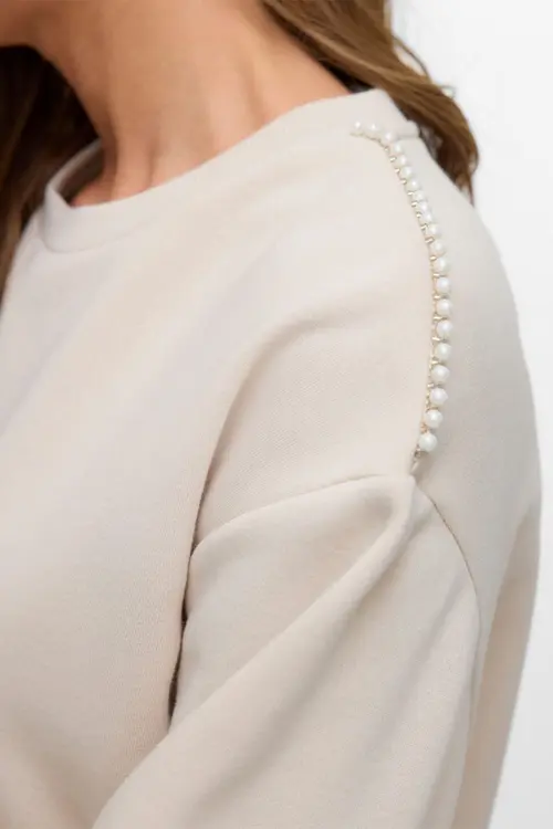 - Με στρογγυλή λαιμόκοψη και λεπτομέρεια με πέρλες