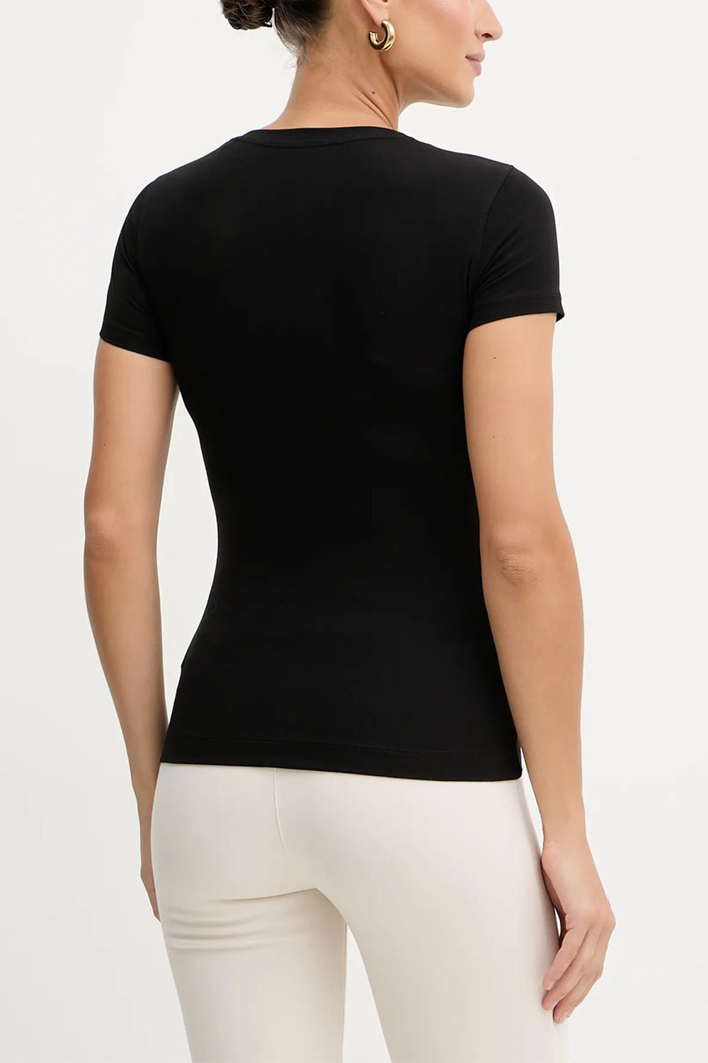 - Κλασική στρογγυλή λαιμόκοψη και κοντά μανίκια