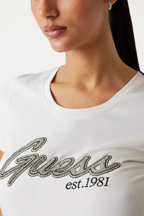 - Κλασική στρογγυλή λαιμόκοψη και κοντά μανίκια