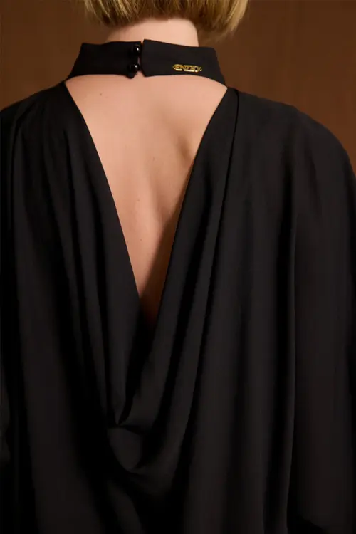 - Στρογγυλή λαιμόκοψη με κλείσιμο με κουμπιά πίσω