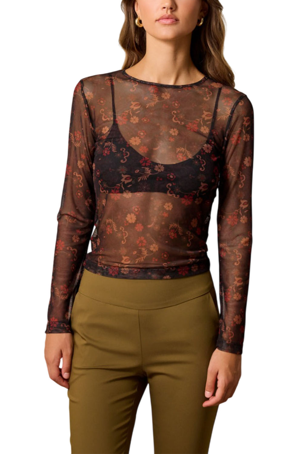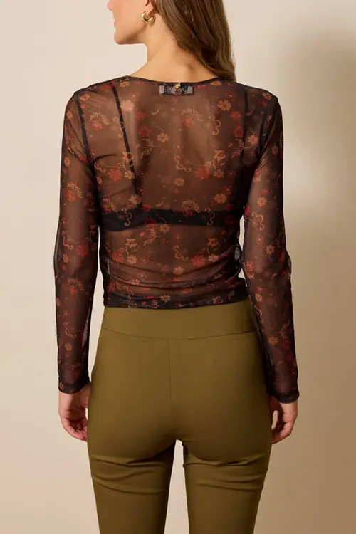 - Μπλούζα εμπριμέ, ημιδιάφανη