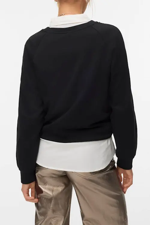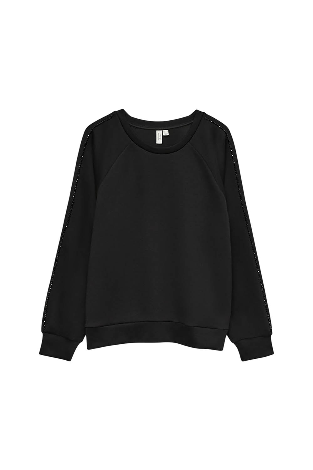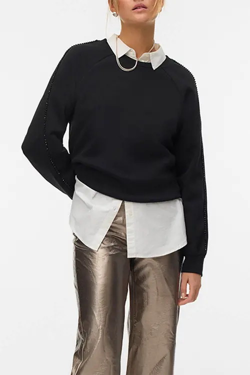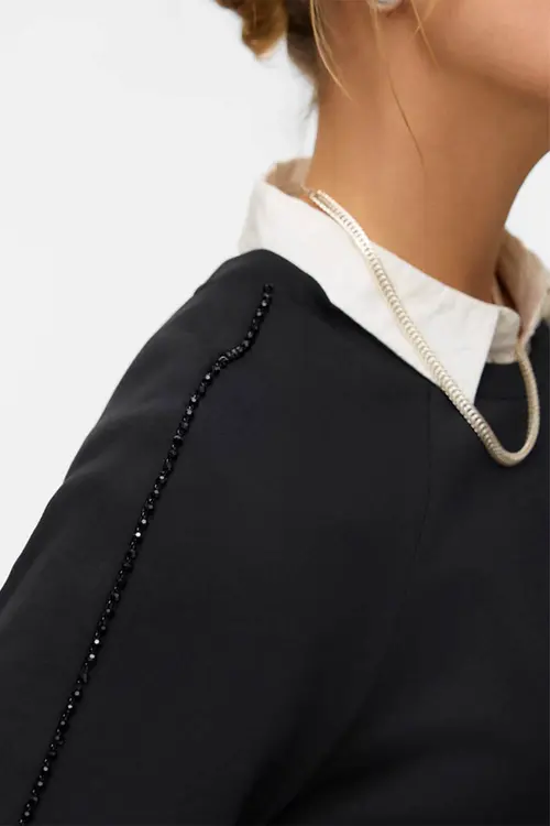 - Στρογγυλή λαιμόκοψη και strass λεπτομέρειες στα μανίκια