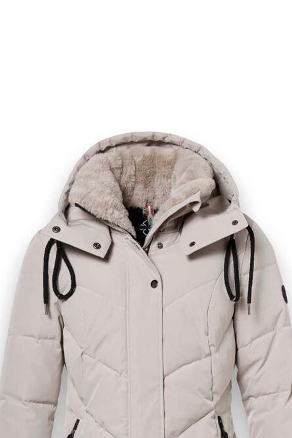 - Με αποσπώμενη, ρυθμιζόμενη κουκούλα και γιακά με επένδυση από τεχνητή γούνα