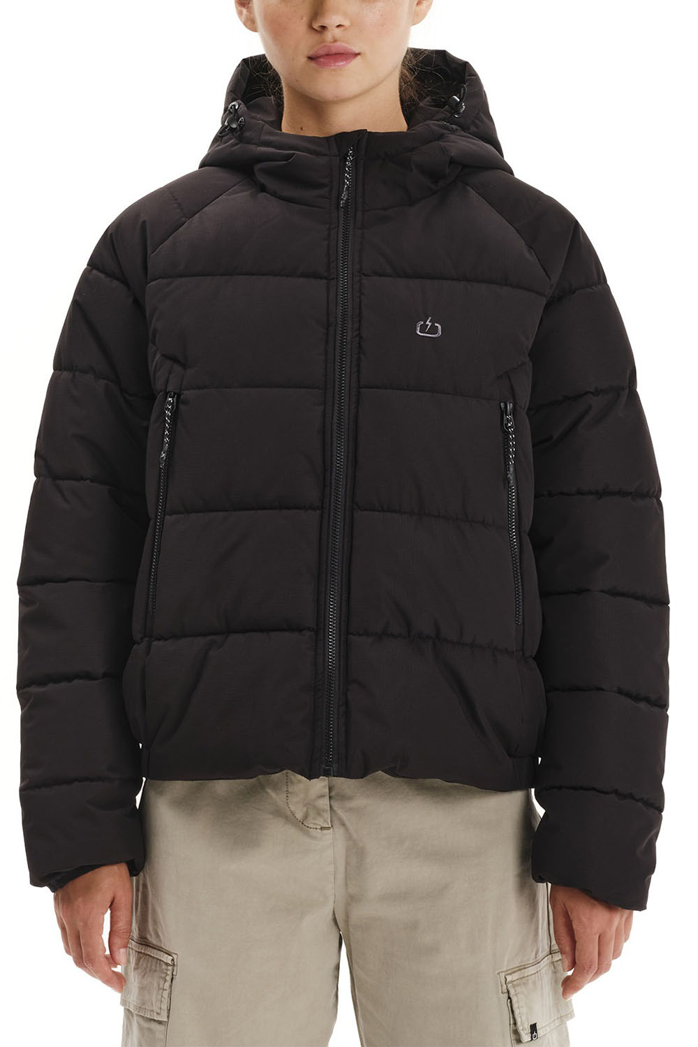 - Ρυθμιζόμενη κουκούλα με ελαστικό κορδόνι