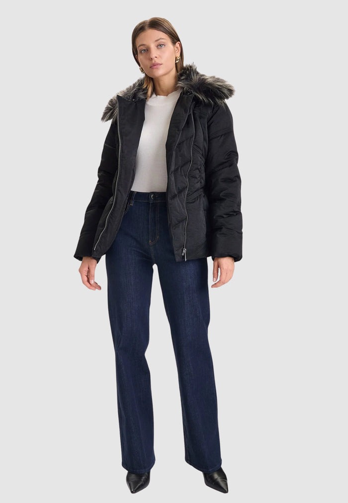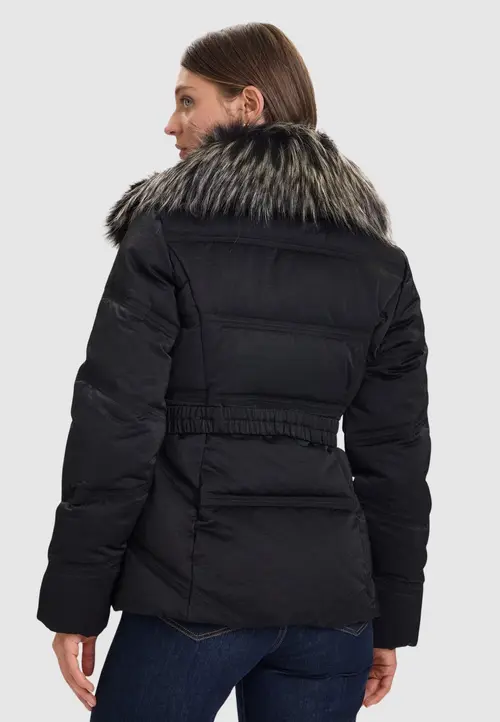 • Μπουφάν από γυαλιστερό ύφασμα, αφαιρούμενη γούνα, αδιάβροχο, κλείσιμο με φερμουάρ και πλαϊνές τσέπες