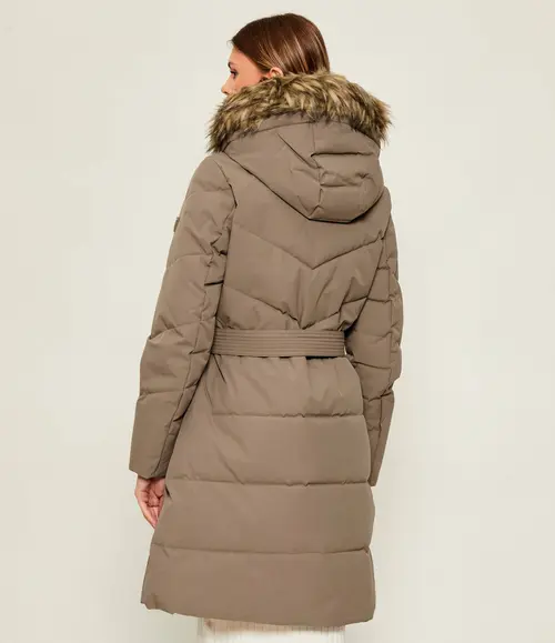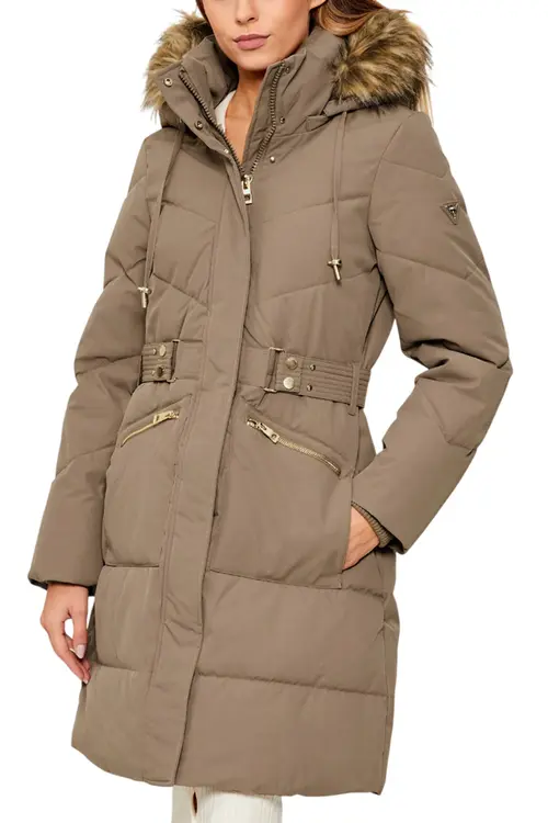 - Κουκούλα με συνθετική γούνα στο τελείωμα και μακριά μανίκια.
