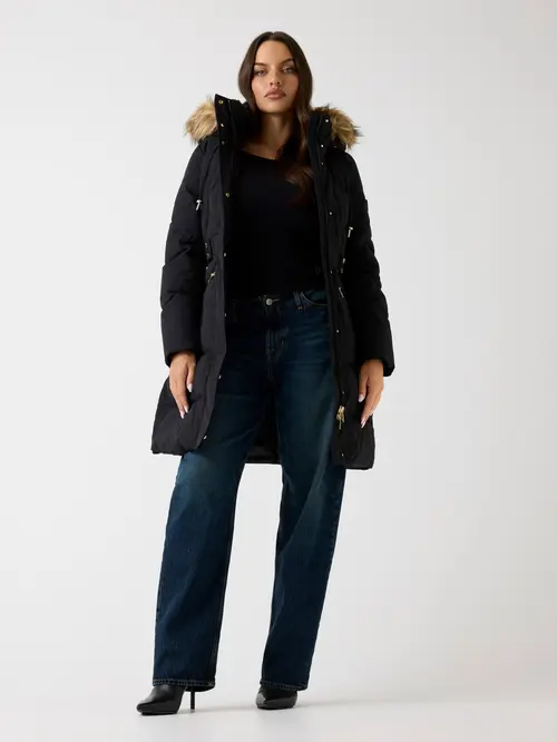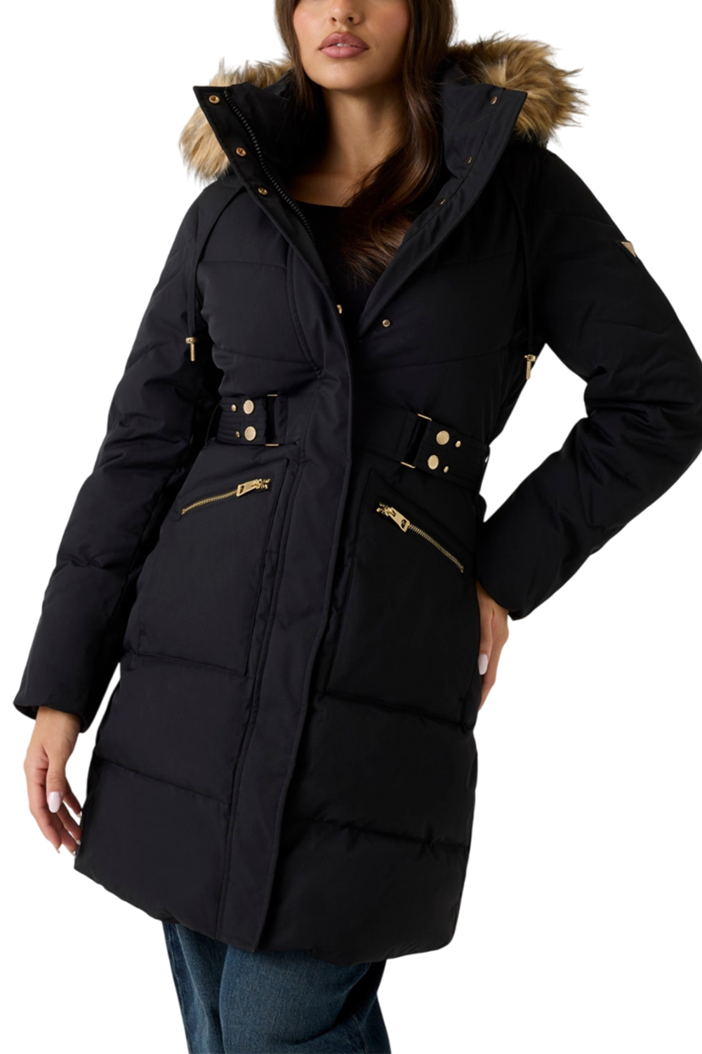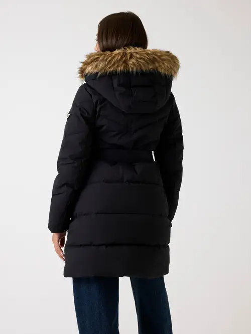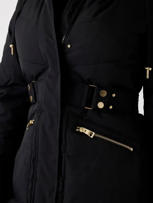 - Κουκούλα με συνθετική γούνα στο τελείωμα και μακριά μανίκια.