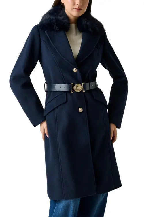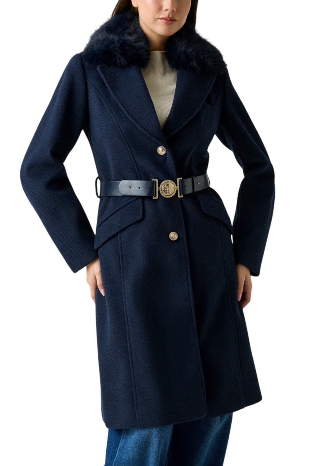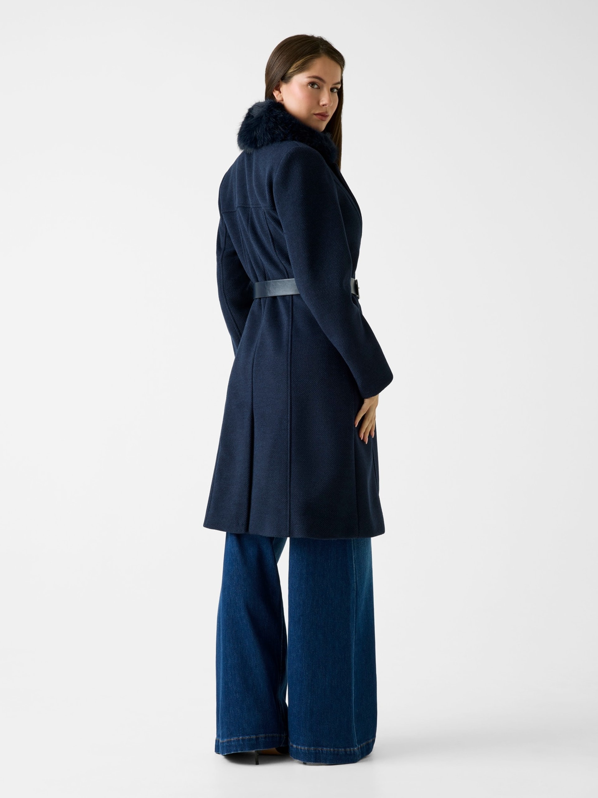 • Γιακάς από συνθετική γούνα με φαρδιά πέτα.