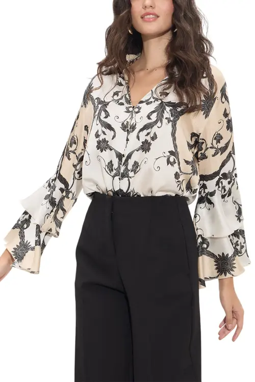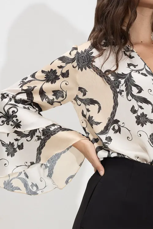- Μακρύ μανίκι με βολάν στο τελείωμα