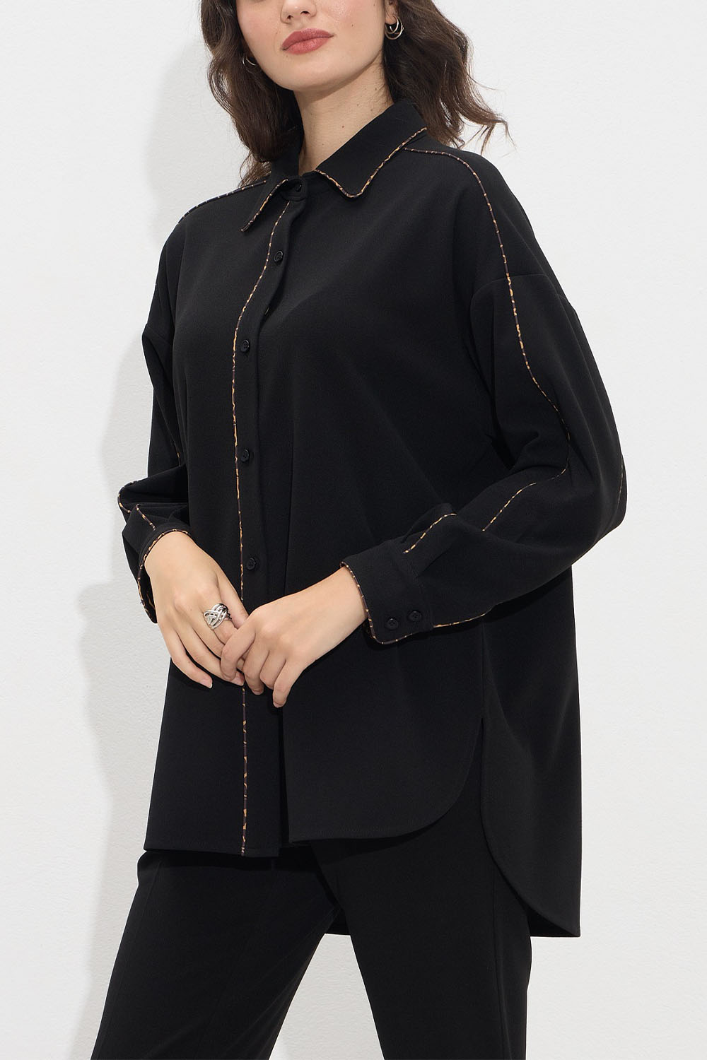 - Μακρύ μανίκι με μανσέτα και κουμπί