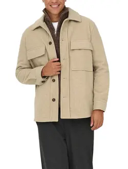 Ανδρικό Παλτό ONLY&SONS 22034727-Τimber Wolf Μπεζ