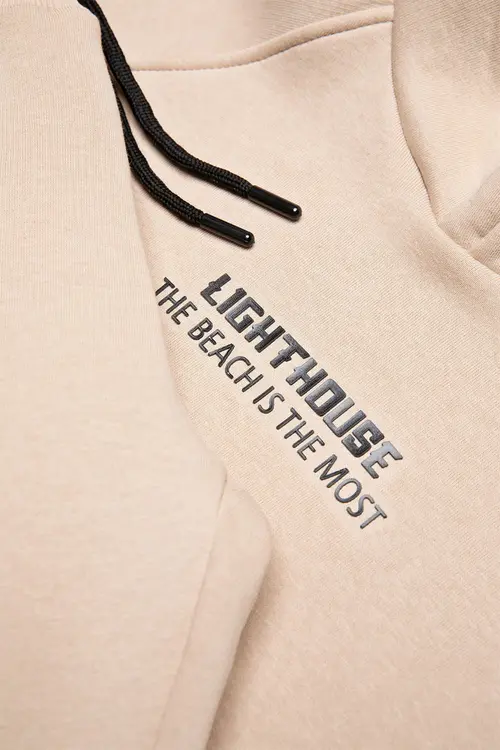 - Μπλούζα με κουκούλα και τσέπη, τύπωμα μπροστά με ανάγλυφη υφή και στα μανίκια