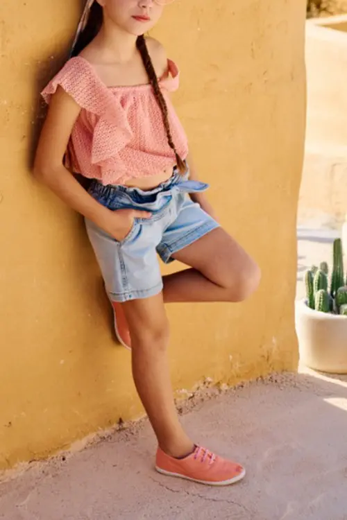 - Σορτς τζιν, με λάστιχο στη μέση .