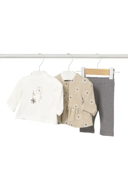 - Περιλαμβάνει μπλούζα, ζακέτα και κολάν