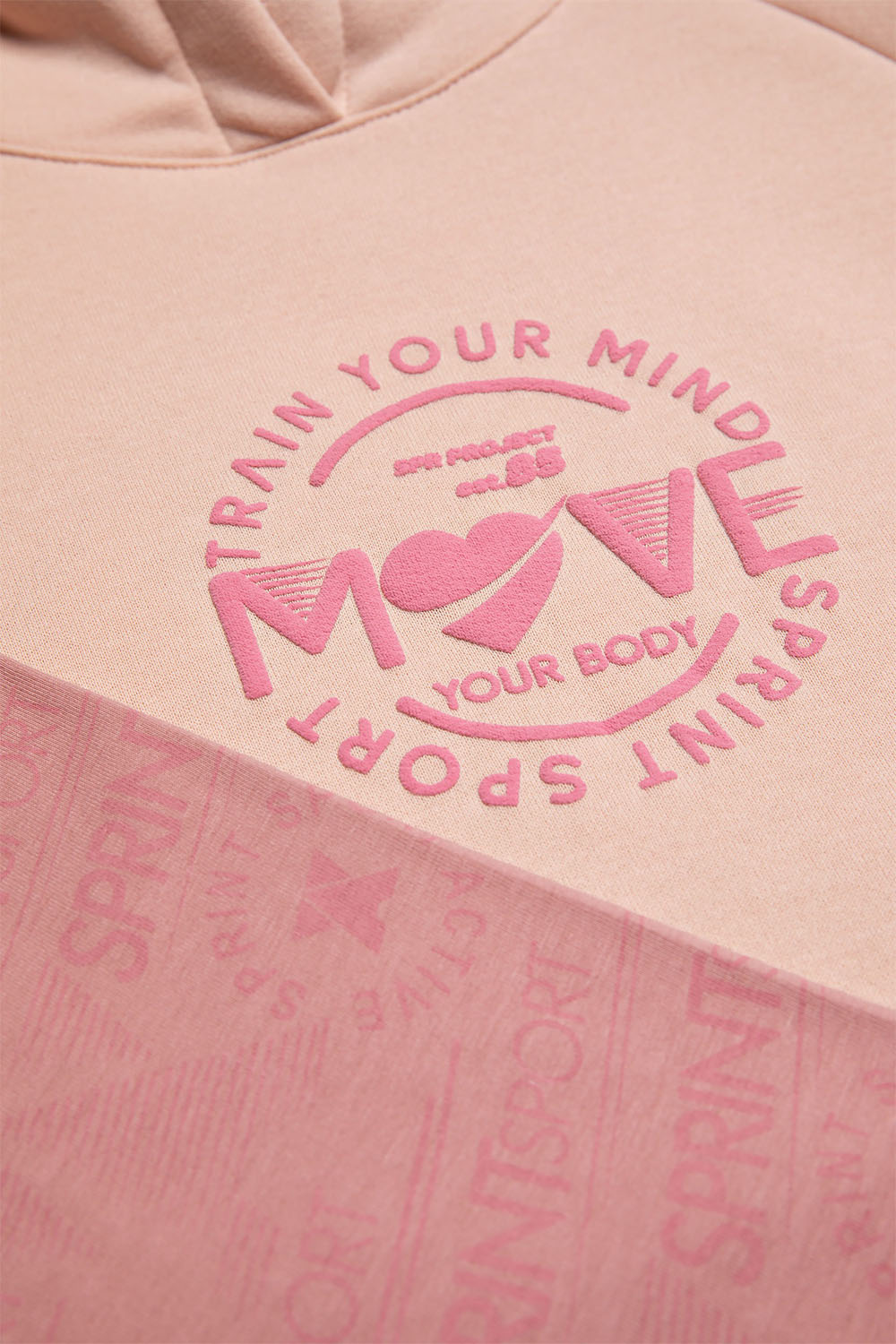 - Μπλούζα φούτερ με χνούδι με κουκούλα και τσέπη, τύπωμα εμπρός και στο πλάι με ανάγλυφη υφή και αθλητική τρέσα με λογότυπο SPRINT